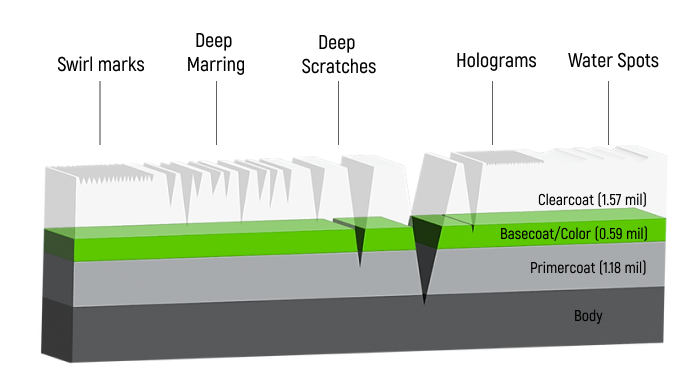 Paint correction removes a very thin layer of the clear coat to level imperfections like swirl marks or scratches. When performed correctly, it safely restores gloss without compromising protection. Excessive correction or poor technique can damage the clear coat.